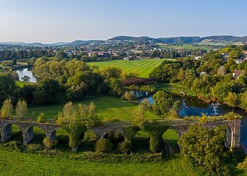 Ross-on-Wye sits 14 miles south of Hereford on a loop of the river. Symonds Yat Rock is 12 miles further on — a 120-metre limestone outcrop with panoramic views over the Wye Gorge. Ludlow, one of England's best-preserved market towns, is 23 miles to the north.